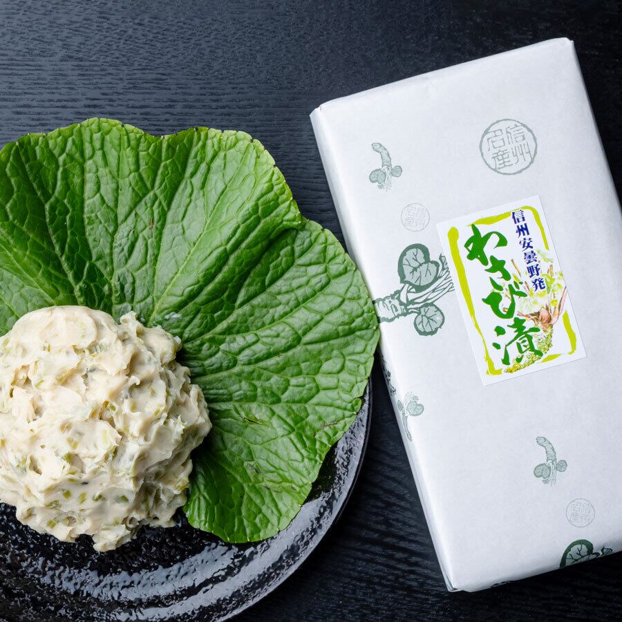 信州そばの箸休めに、またお酒のおつまみにピッタリです。アツアツのご飯にかけて食べるのもこれまたオツです!わさびのシャキッとした辛味と酒粕の甘みをお楽しみ下さい。